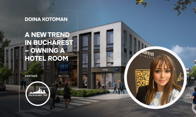 An interview with Doina Cotoman about investing in hotel rooms at a hotel near Otopeni Airport in Bucharest. Featured in the “Real Estate” section, supported by Proimobil.md and North Bucharest Investments.