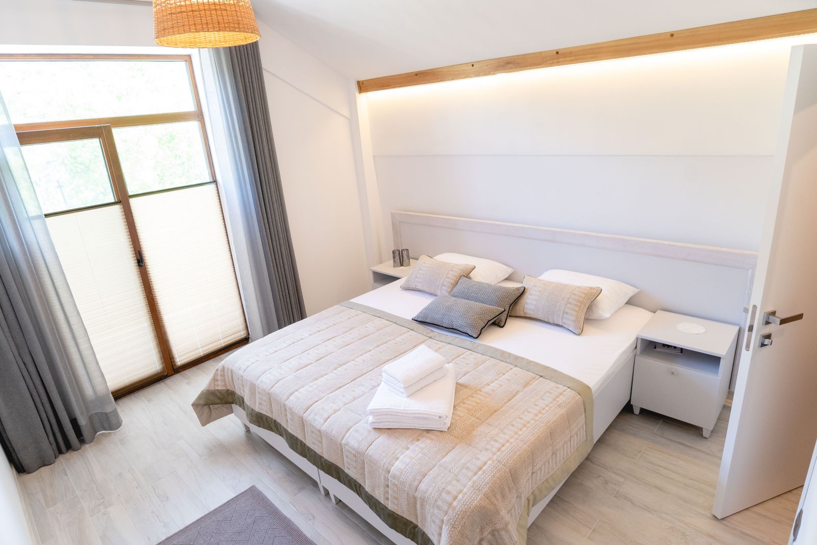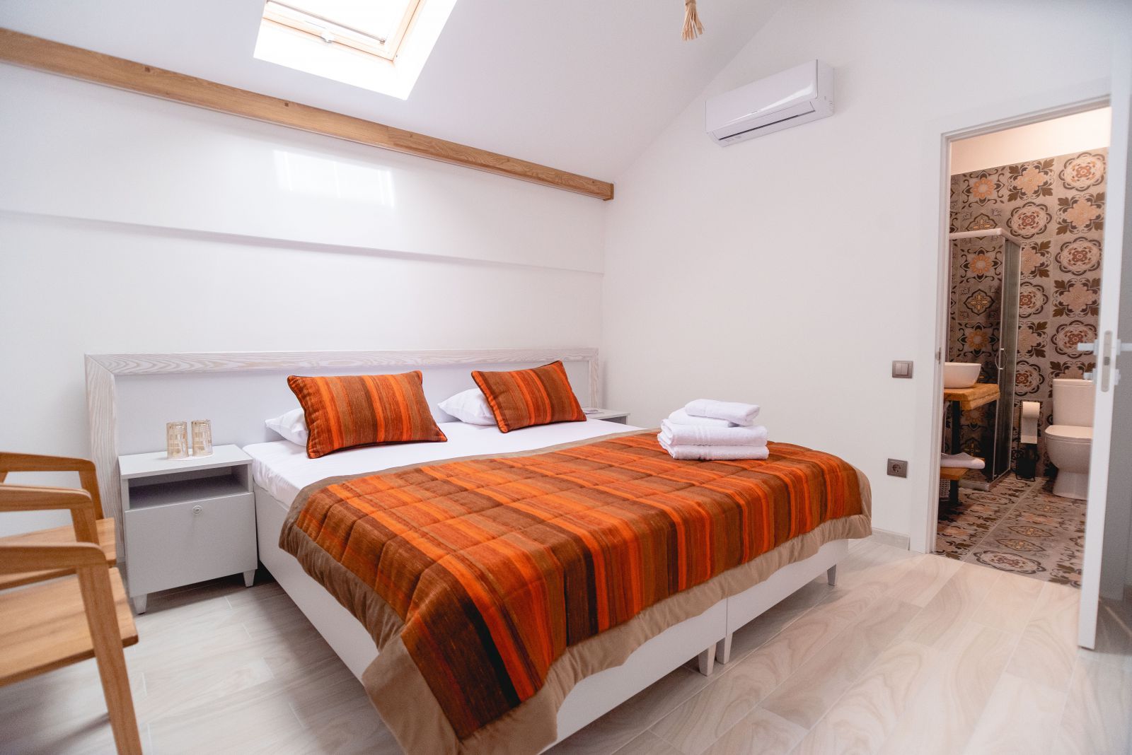Но также мы хотели предложить гостям условия на самом высоком уровне. В каждом номере свой санузел, три из пяти имеют балконы с видом на сказочный вид на скалы и Реут. Или в комнате, которую я называю «Комнатой звезд» есть окно на потолке. На первом этаже ливинг, где гости могу завтракать зимой, летом они завтракают на террасе с видом.