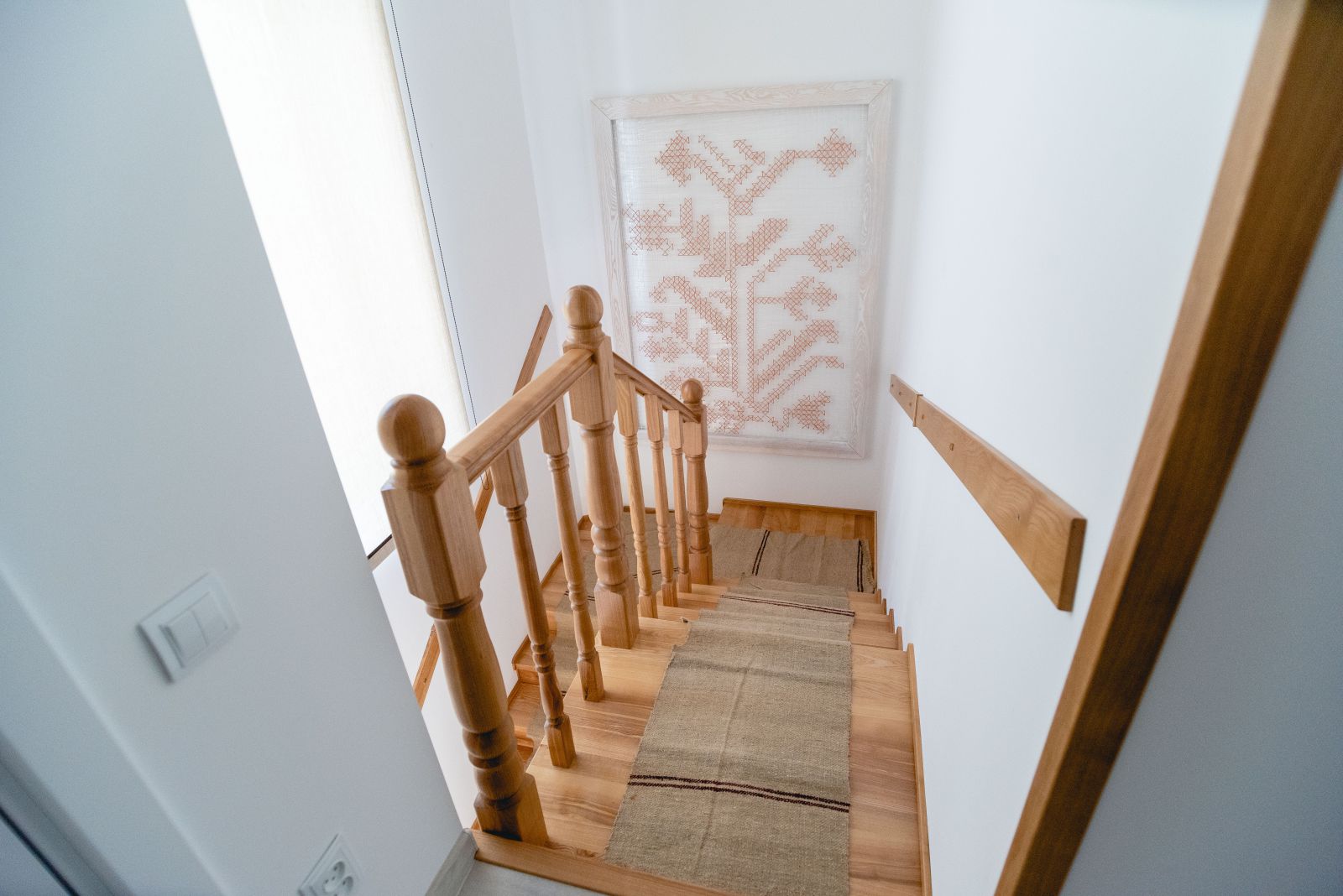 Есть такие детали в традиционном стиле, как ковер ручной работы с Pomul Vietii.