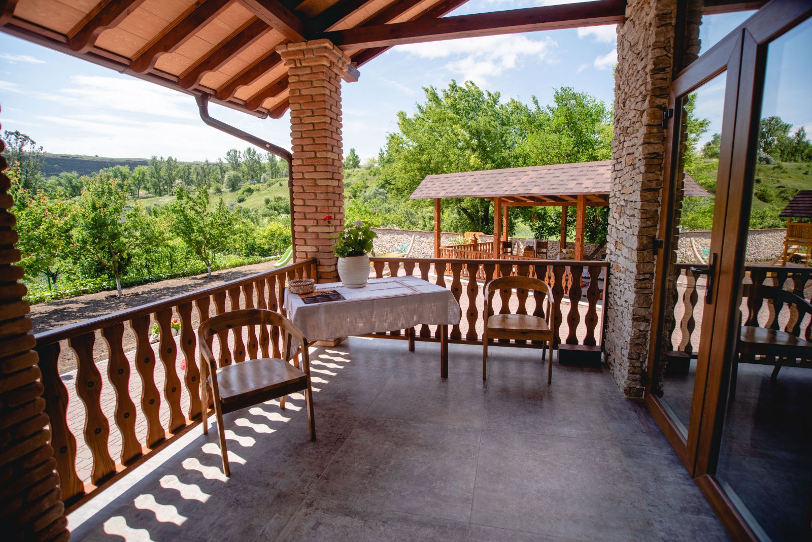 С самого начала моя идея заключалась в том, чтобы, зайдя в Casa Rândunicii гости оказывались как будто двух разных мира. Во дворе все из камня и дерева. При поддержке иностранных партнеров мы построили и террасу из дерева, а сам дом и даже забор из камня. А внутри уже концепция такая, что в интерьере сочетаются два стиля – национальный и модерн.