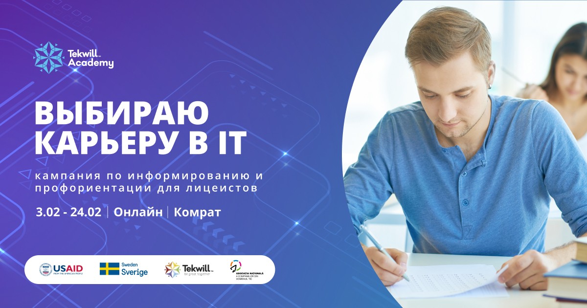Сегодня, 3 февраля и в 3 других четверга февраля, Tekwill & Tekwill Academy проведут в Комрате, в онлайн формате, серию мероприятий для лицеистов по профориентации в сфере ИТ - ‘Выбираю карьеру в ИТ‘. В рамках этих мероприятий они познакомятся с историями успеха 4 ИТ-специалистов из Гагаузского региона.