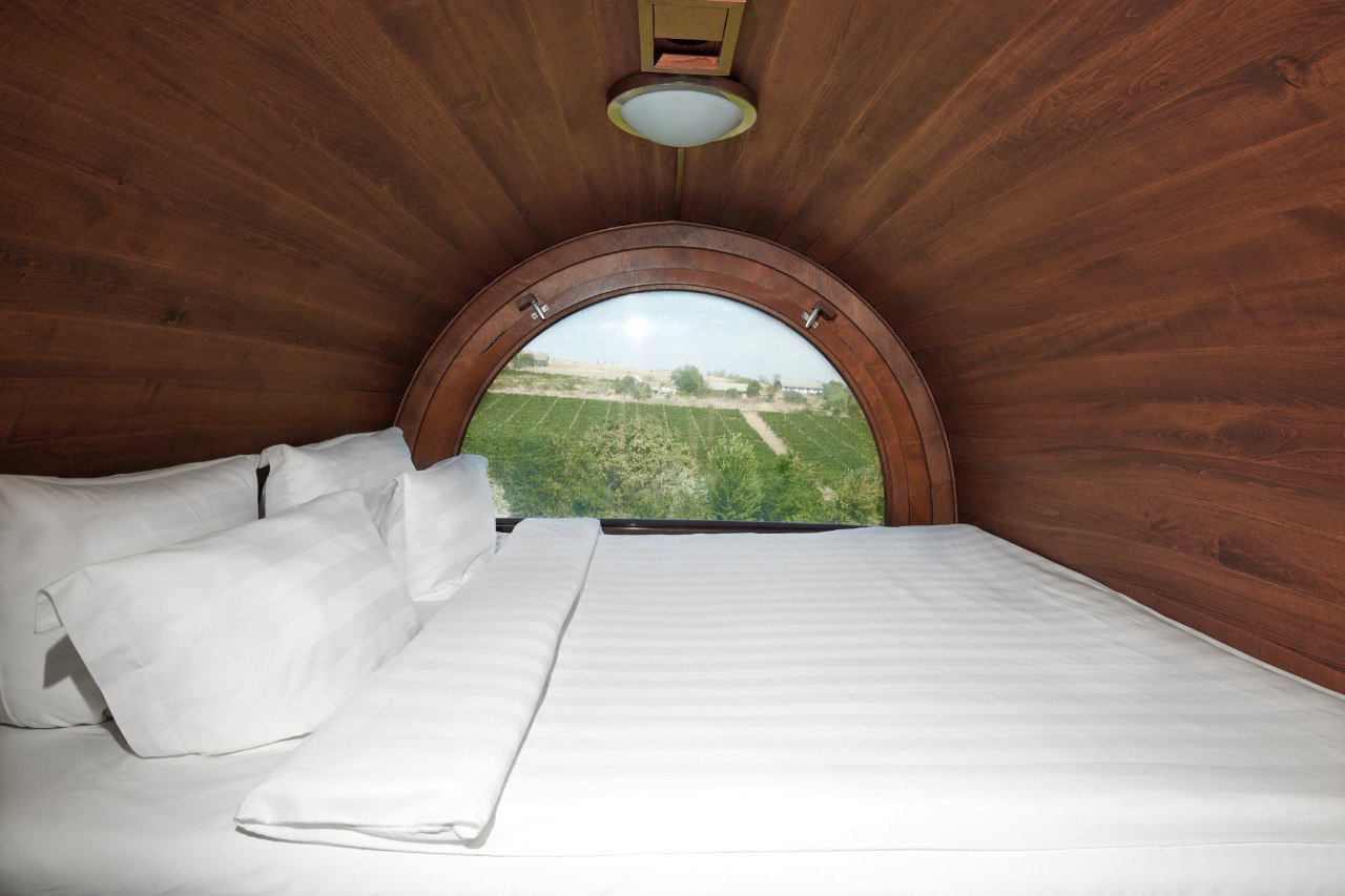 И два номера, где спальня расположена в настоящей бочке, а окна из бочек выходят на виноградники.