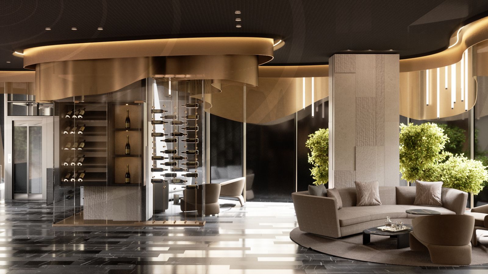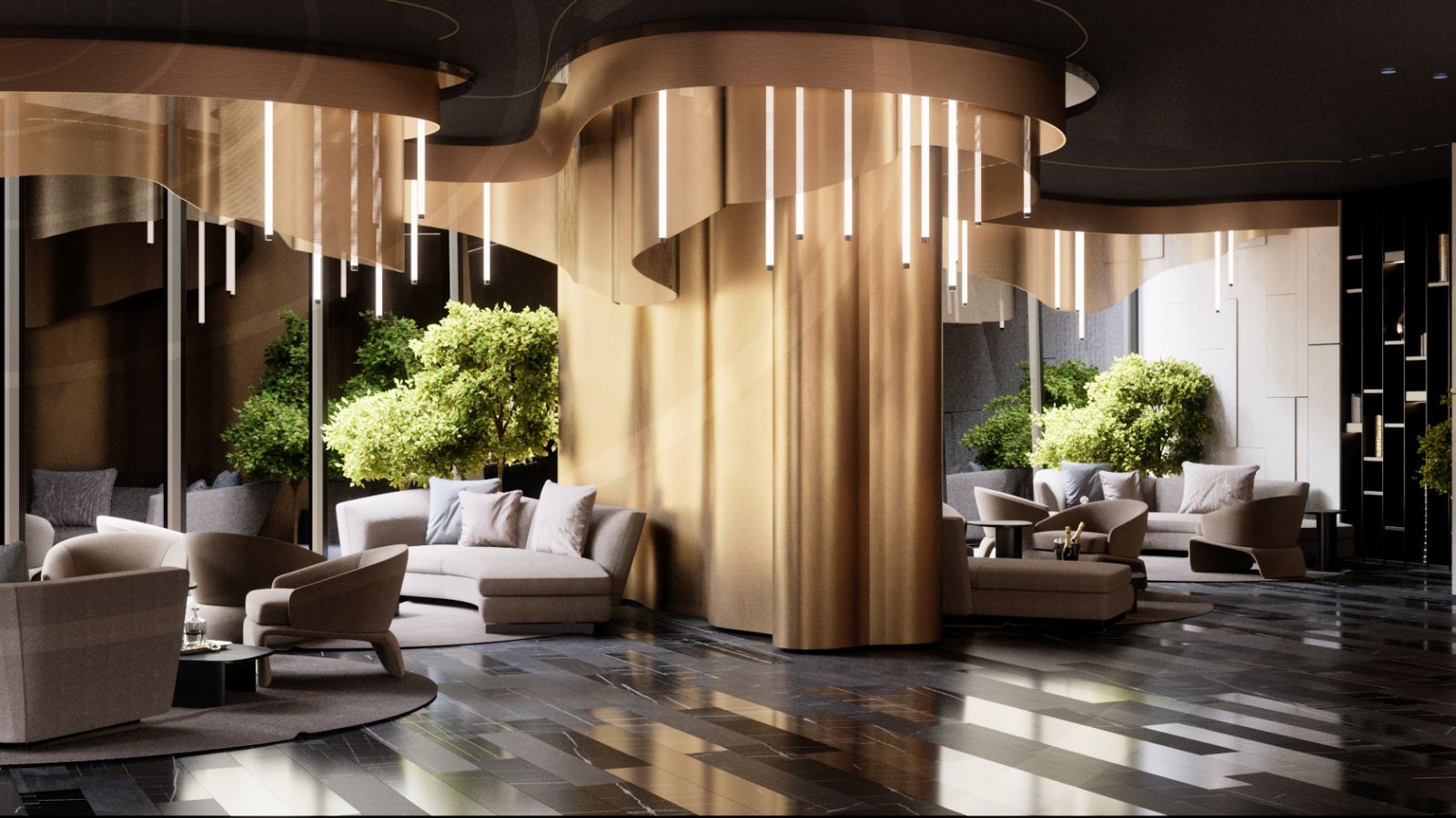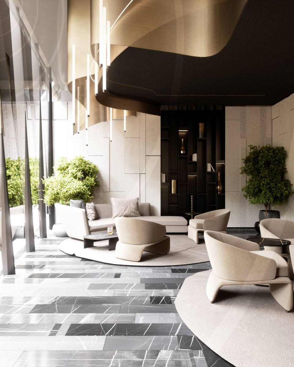 Вы показали мне как будет выглядеть лобби Infinity Tower и лаунж-бар или лаунж-кафе. У меня появилось впечатление, что их сочетание – это как инь и ян в китайской философии. Единство противоположностей, белого и черного. Была такая идея?