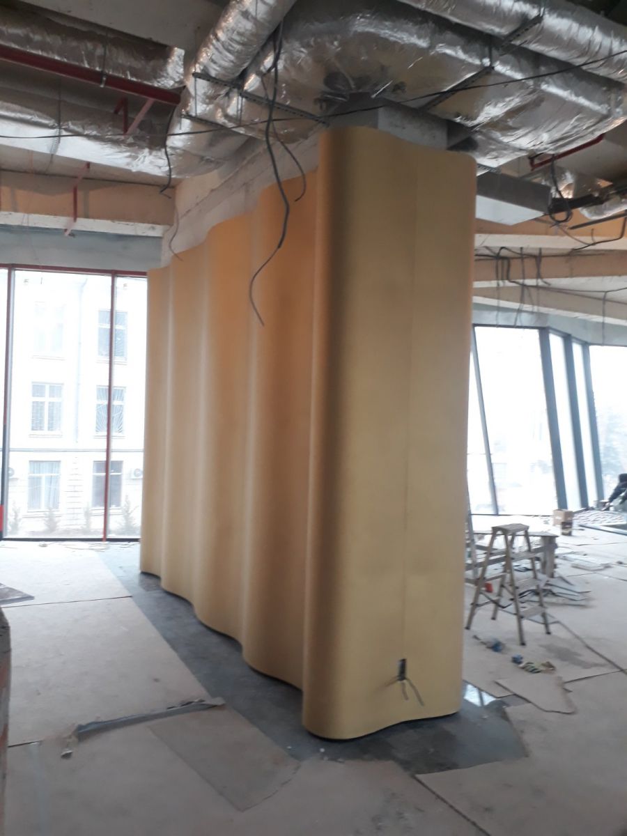 Да. Здесь мы применяли более дорогие элементы интерьера, чтобы привнести аромат роскоши в дух минимализма. Латунь, или металл под латунь. Была идея декорировать колонны металлом, но пришла еще более интересная – обшить их кожей. Кстати, это та часть работы, которую мы делали вместе с вашим медиа партнером – Still Ferro. В целом мы хотели, чтобы атмосфера навеяла гостям ассоциации с джазом, вечерним отдыхом, релаксом после рабочего дня.