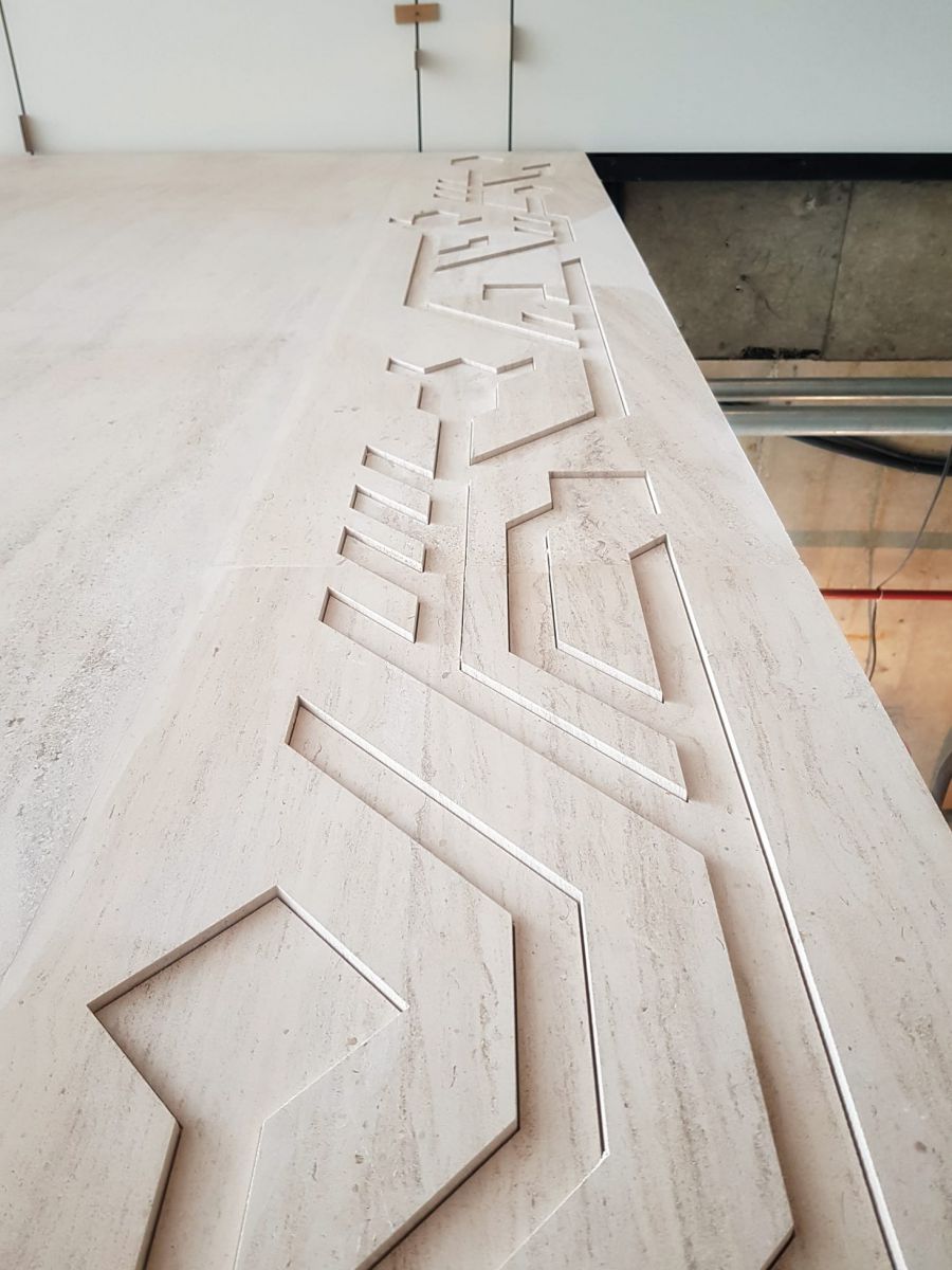 Обязательно пол. Он сделан из одного камня, но камень обработан как четыре разные текстуры, от матового покрытия до отполированного глянца.