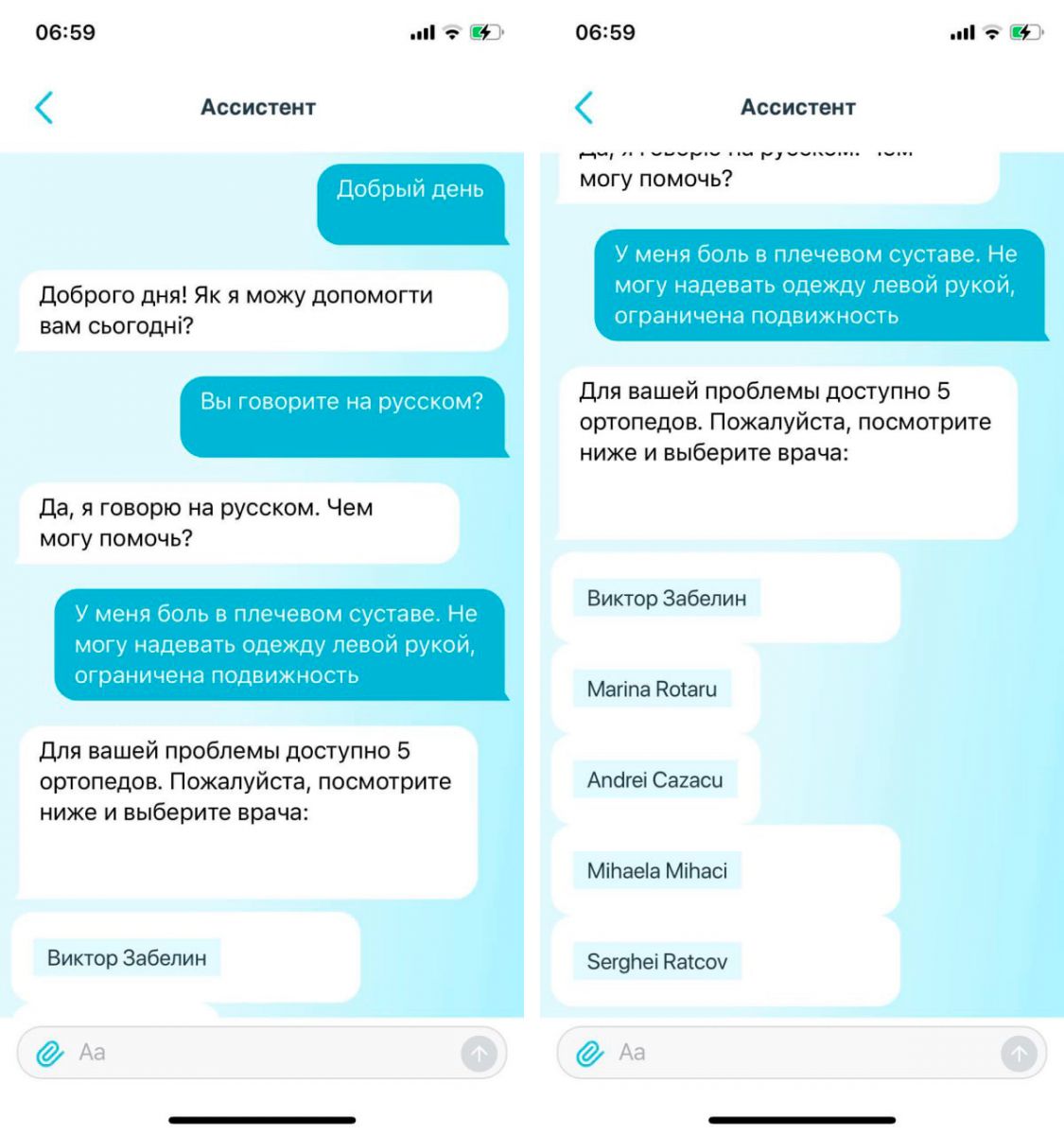 Есть поиск по специальности врача, симптомам и по имени врача, если вы заранее знаете кого ищите. Кроме того, первым в списке контактов в x.doctor находится ассистент, подключенный к искусственному интеллекту. Вы описываете ему свои симптомы в форме диалога, и он отвечает вам списком докторов, которые могут решить вашу проблему.