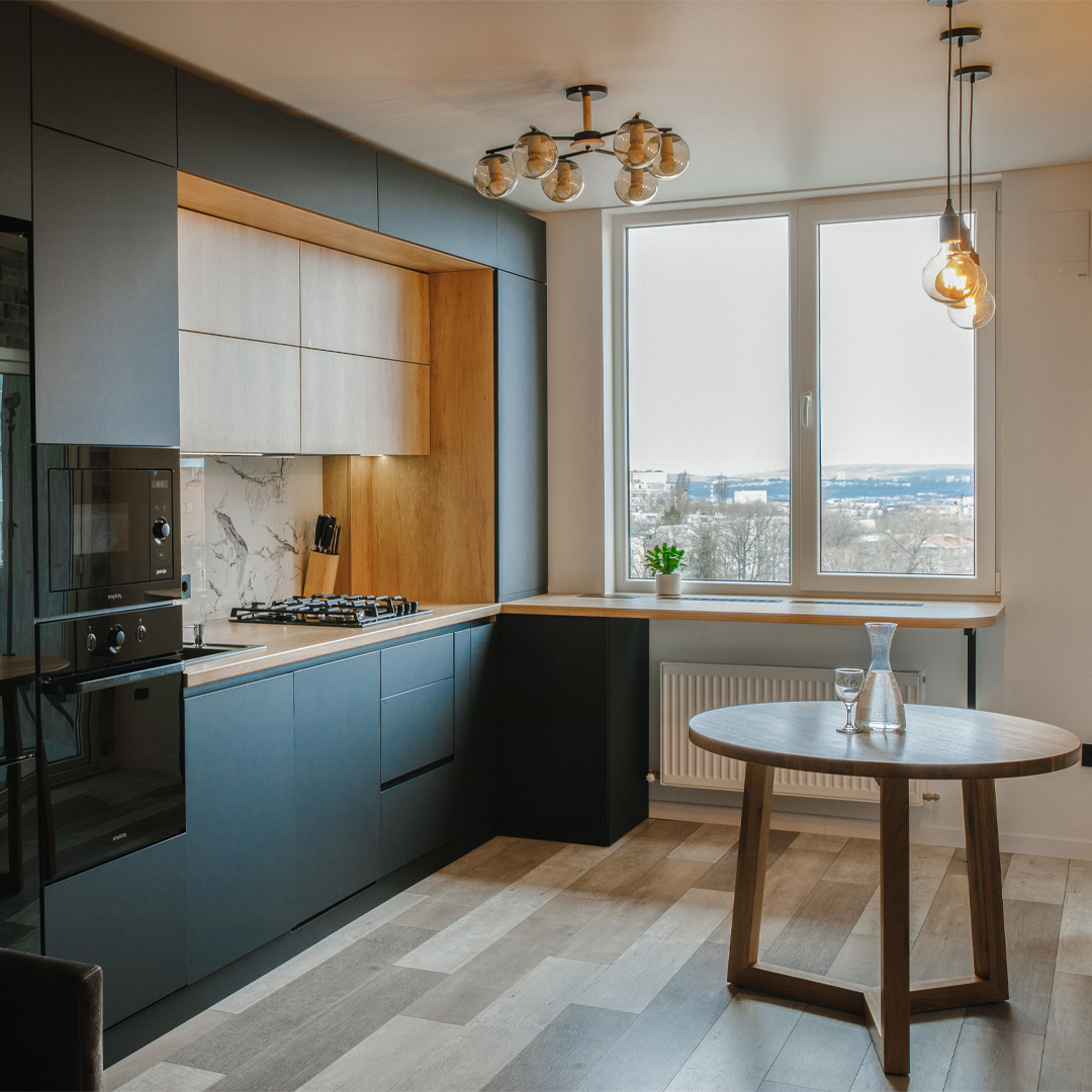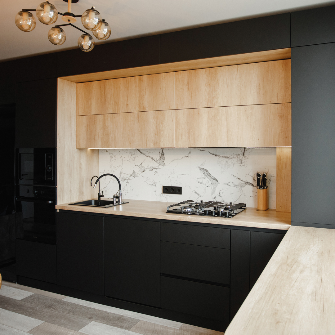 Точно так. В большинстве случаев люди нанимают дизайнера, и он делает дизайн интерьера для всей квартиры. Так и мы производим корпусную мебель для всей квартиры или дома. К примеру, недавно закончили две квартиры. Делали на заказ и устанавливали мебель на кухне, все шкафы, полки. Такую мебель, как кофейные столики, можем сделать из дерева, не проблема.
