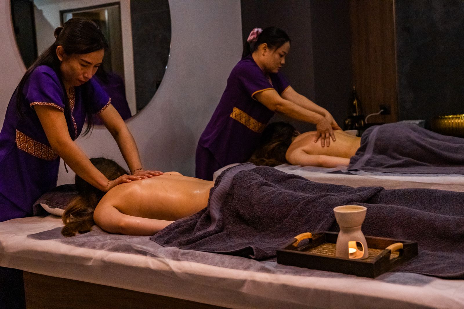 У нас есть несколько видов тайского массажа, например, традиционный, в четыре руки, массаж ног, тайский массаж категории SPA, куда входят массаж с аромамаслами, массаж горячими камнями, массаж горячими мешочками с тайскими травами, спортивный массаж, slim-массаж, есть spa-программы как для двоих, так и для одного. Всего у нас около 20 разновидностей массажа. Также есть солевая комната и сауна где можно отдохнуть и оздоровиться.